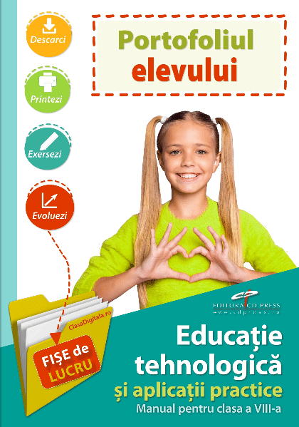 Varianta interactivă a Caietului va fi disponibilă integral gratuit tuturor profesorilor care au comandat Manualul CD PRESS de Educație tehnologică clasa a VIII-a.