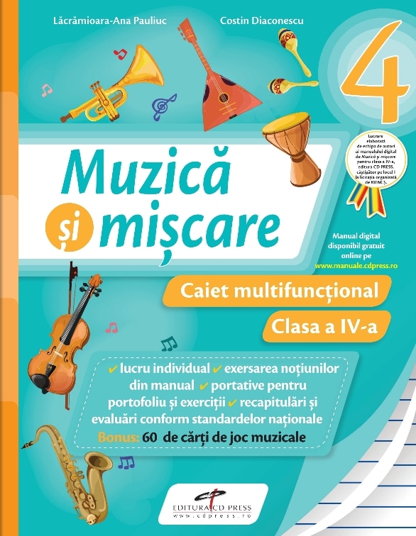 Caietul multifuncțional de Muzică și mișcare, clasa a IV-a este structurat ca un suport pentru Muzică și mișcare. Manual pentru clasa a IV-a, Editura CD PRESS, câștigător pe locul I la licitația MENCȘ.